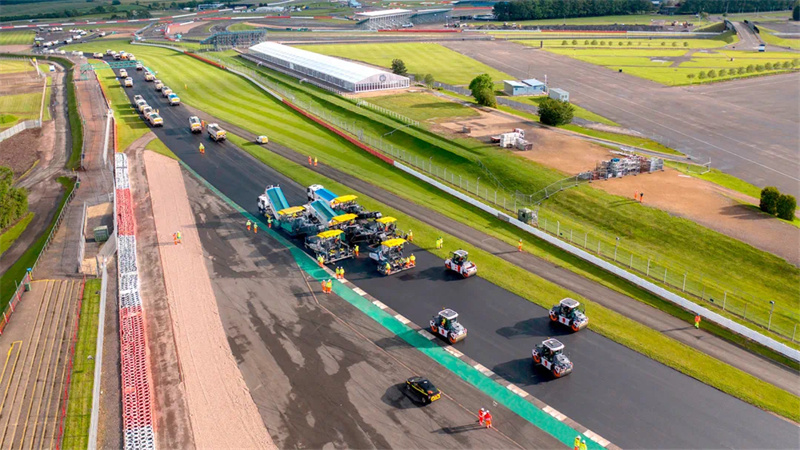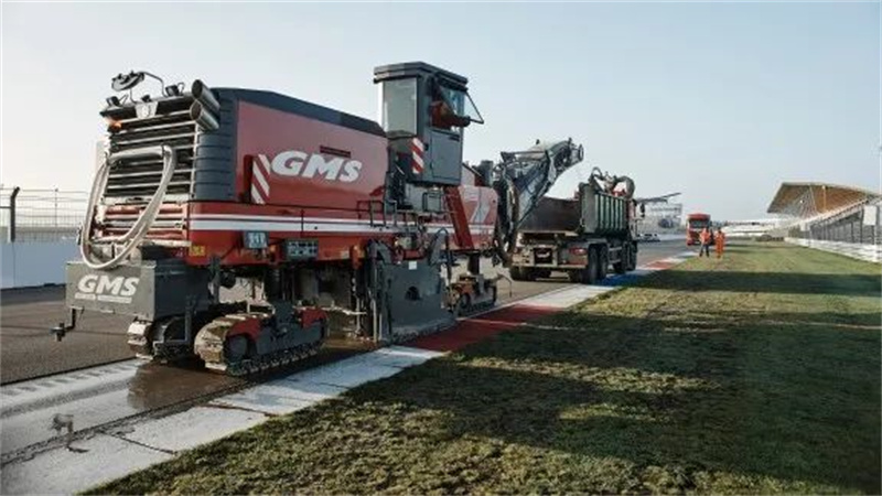 在某些情況下,還需要在賽道的指定區(qū)域內(nèi)調(diào)整坡度,這就涉及到銑刨面層,如果有必要還可能需要銑刨粘結(jié)層,隨后使用福格勒攤鋪機(jī)和悍馬壓路機(jī)對(duì)新瀝青層進(jìn)行鋪設(shè)和壓實(shí)。